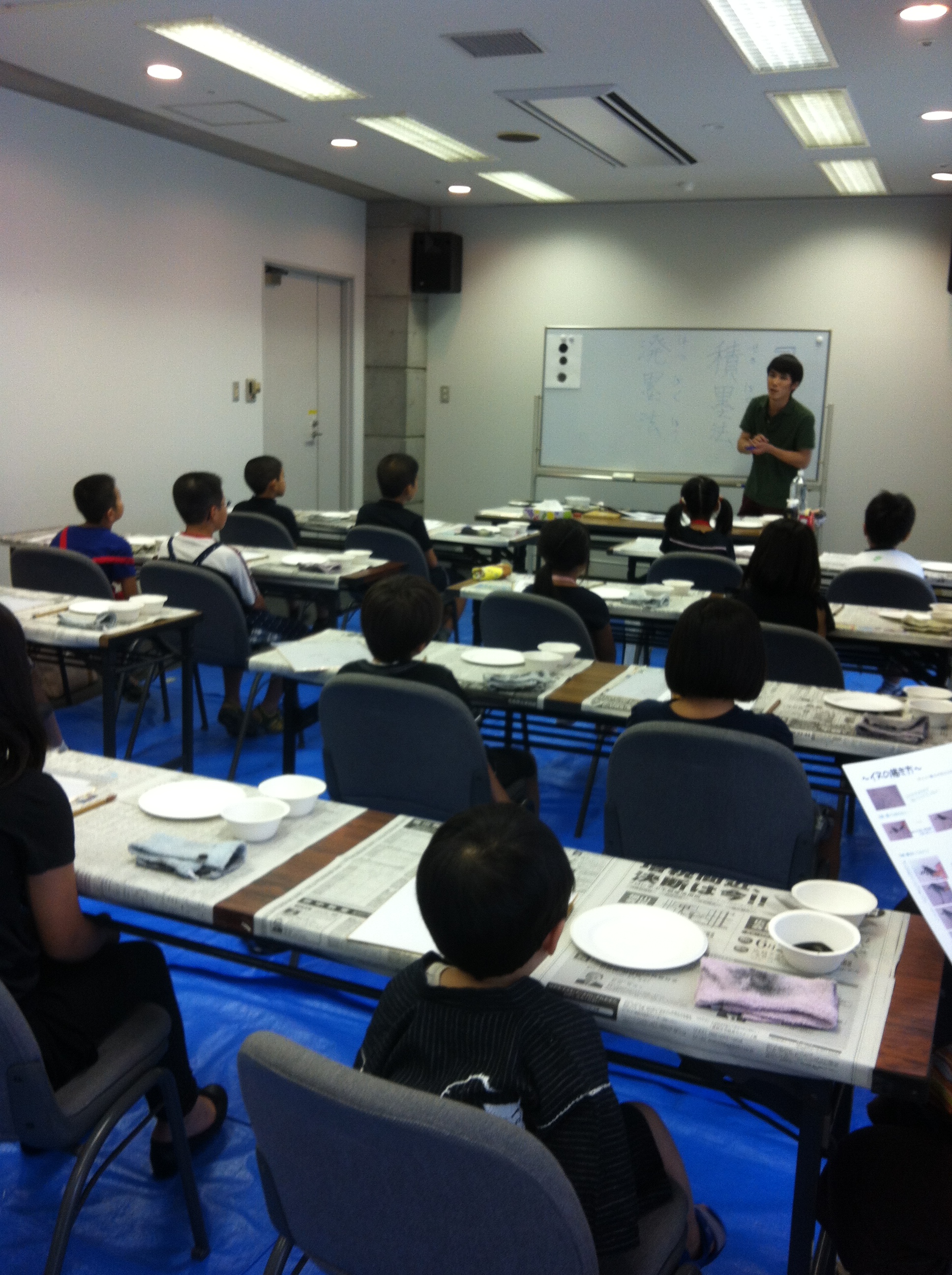 友人のロンちゃんが勤めているコペルという会社のお世話で、30人ほどの子どもたちに水墨画を教える機会を設けていただきました( ´ ▽ ` ) 0歳からの全脳開発、こどもの可能性は無限大をモットーにするコペルさんのHPはコチラ→http://www.copel.info/ 福岡市内のとあるホテルの研修室のような部屋で行ないましたが、会場のキャパを考えて、午前と午後の2部構成にさせていただきました。 なかにはこんな ちっちゃいお子様も。 それでも一生懸命に取り組んでいただきました!! 準備はいつものようにバタバタと。。 スタッフをしてくださったコペルの荻原さん(←字、合ってますか?)、本当にありがとうございました。 後からずっと考えても、あそこまでスムーズに進行できたのは、ロンちゃんと荻原さんのおかげです… 僕も習字を教えている子どもたちが沢山いますので、少しは子どもの集中力のことなども理解しているつもりでしたが… 今回のコペルさんに通われているお子さんたちのお行儀の良さには、驚きました。 まず、しっかりと話を聞いているし、ほとんどの子供さんたちがその話をよく理解していると感じました。 もちろん日頃からの家庭でのお父さんお母さん方の取り組みもあるのでしょうけれど、コペルさんでの指導方針もきっと豊かなのでしょうね。。 ネコ、イヌを半年ほど前に西日本新聞社さんのこどもっとだいがくで教えさせていただいた時にロンちゃんが手伝いに来てくれて、その時と同じ課題で取り組まさせていただきました。 今回は、その時よりも、年齢が下がるというように聞いておりましたので、それなら最終的には、もっと自由な仕上げでやってもらおうと準備して…みんな、真剣だけど、楽しそうでしたね!!! 最後は『陰影と絵画から見た宗教観』のお話。 ちょっと思っていたよりも年少さんたちでしたので、画面構図から見る主人公性の話は割愛しました(笑)が、僕のこの話はロンちゃんが大好きのようで、是非コペルの子どもたちに聞かせて欲しい!ということでした( ´ ▽ ` ) 子どもたちに、「2時間、長かったでしょ?」と聞くと、 「全然!」「早く感じた」「もっと描きたかった」といわれて、こちらの方が『すごいなあ』と思う次第。 また、どこかでコペルの皆様、お会いしましょう。 どうも、ありがとうございました♪ 拝 |