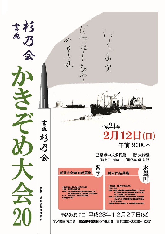 僕にとって、集中して見られる書画実演の機会の中では、もっとも緊張感を伴うのが、このかきぞめ大会です。