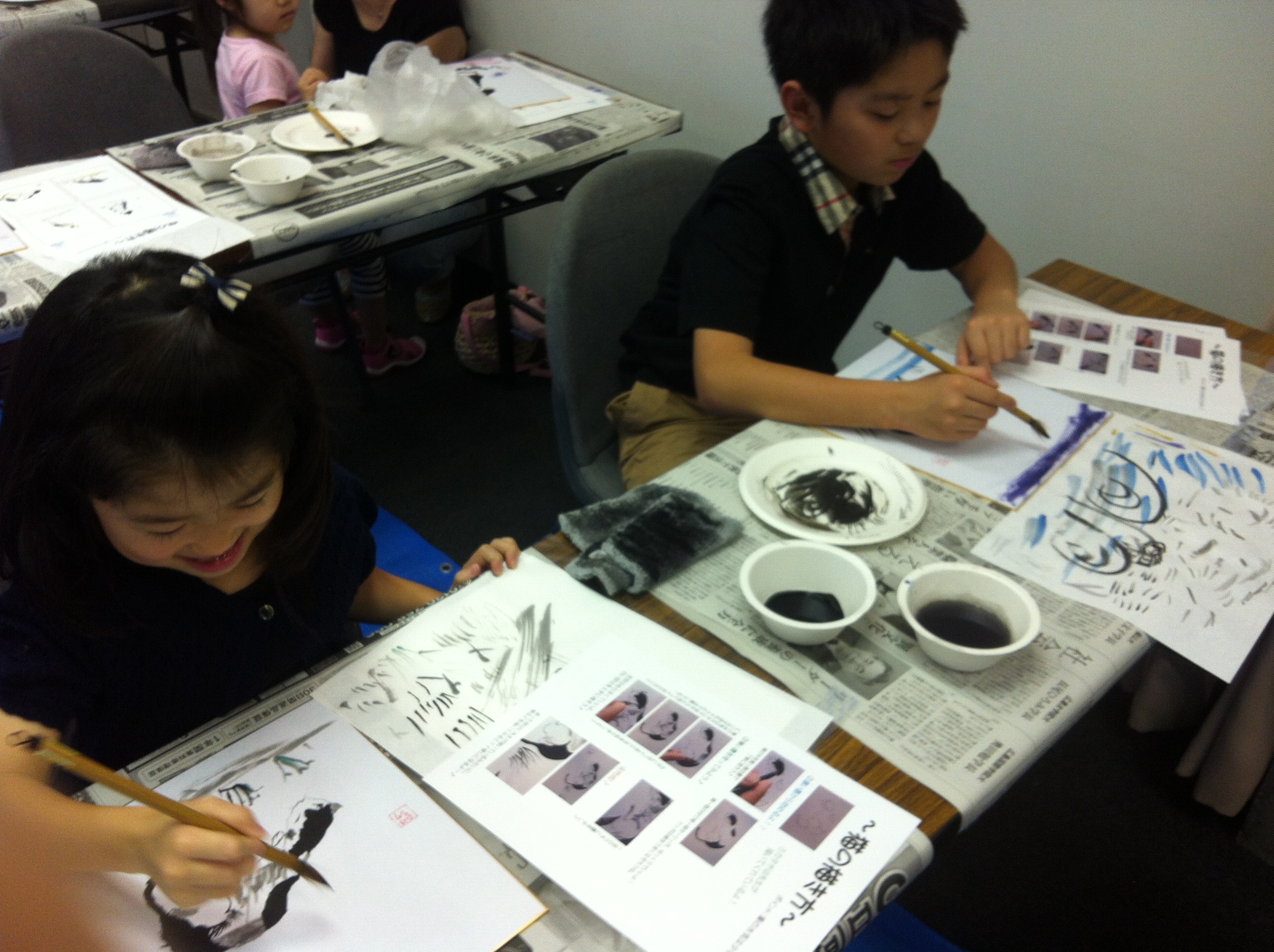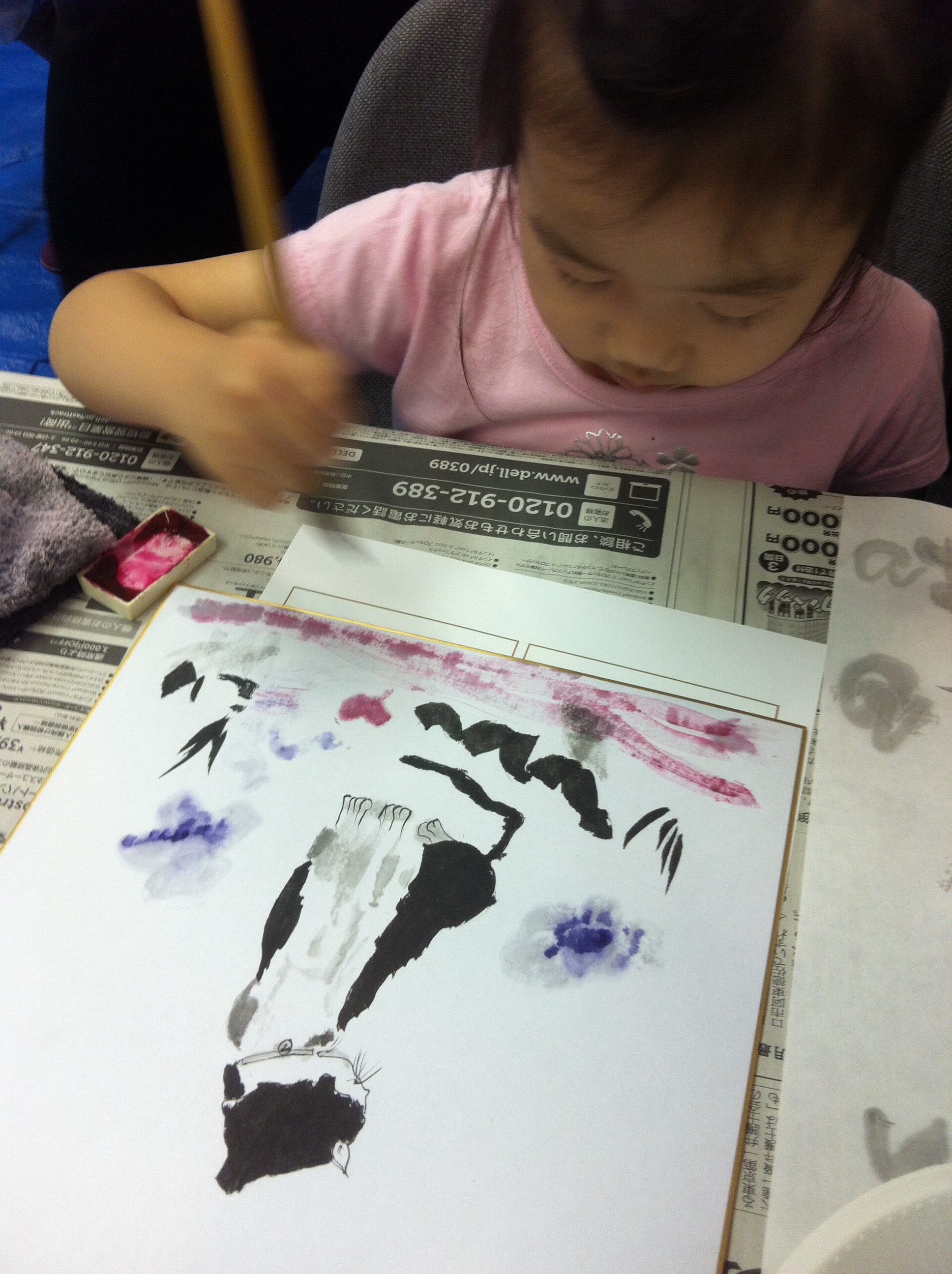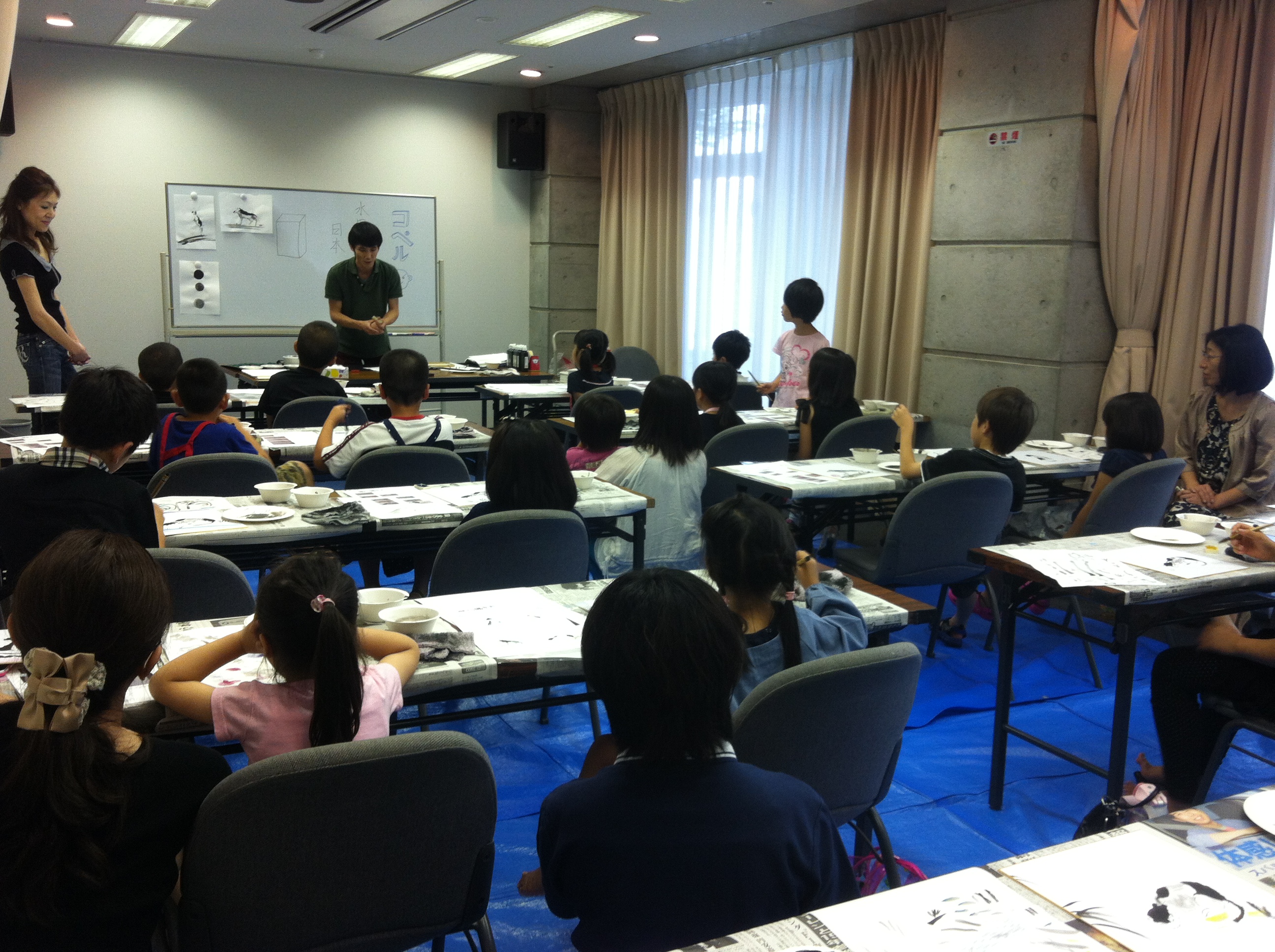 友人のロンちゃんが勤めているコペルという会社のお世話で、30人ほどの子どもたちに水墨画を教える機会を設けていただきました( ´ ▽ ` ) 0歳からの全脳開発、こどもの可能性は無限大をモットーにするコペルさんのHPはコチラ→http://www.copel.info/ 福岡市内のとあるホテルの研修室のような部屋で行ないましたが、会場のキャパを考えて、午前と午後の2部構成にさせていただきました。 なかにはこんな ちっちゃいお子様も。 それでも一生懸命に取り組んでいただきました!! 準備はいつものようにバタバタと。。 スタッフをしてくださったコペルの荻原さん(←字、合ってますか?)、本当にありがとうございました。 後からずっと考えても、あそこまでスムーズに進行できたのは、ロンちゃんと荻原さんのおかげです… 僕も習字を教えている子どもたちが沢山いますので、少しは子どもの集中力のことなども理解しているつもりでしたが… 今回のコペルさんに通われているお子さんたちのお行儀の良さには、驚きました。 まず、しっかりと話を聞いているし、ほとんどの子供さんたちがその話をよく理解していると感じました。 もちろん日頃からの家庭でのお父さんお母さん方の取り組みもあるのでしょうけれど、コペルさんでの指導方針もきっと豊かなのでしょうね。。 ネコ、イヌを半年ほど前に西日本新聞社さんのこどもっとだいがくで教えさせていただいた時にロンちゃんが手伝いに来てくれて、その時と同じ課題で取り組まさせていただきました。 今回は、その時よりも、年齢が下がるというように聞いておりましたので、それなら最終的には、もっと自由な仕上げでやってもらおうと準備して…みんな、真剣だけど、楽しそうでしたね!!! 最後は『陰影と絵画から見た宗教観』のお話。 ちょっと思っていたよりも年少さんたちでしたので、画面構図から見る主人公性の話は割愛しました(笑)が、僕のこの話はロンちゃんが大好きのようで、是非コペルの子どもたちに聞かせて欲しい!ということでした( ´ ▽ ` ) 子どもたちに、「2時間、長かったでしょ?」と聞くと、 「全然!」「早く感じた」「もっと描きたかった」といわれて、こちらの方が『すごいなあ』と思う次第。 また、どこかでコペルの皆様、お会いしましょう。 どうも、ありがとうございました♪ 拝 |